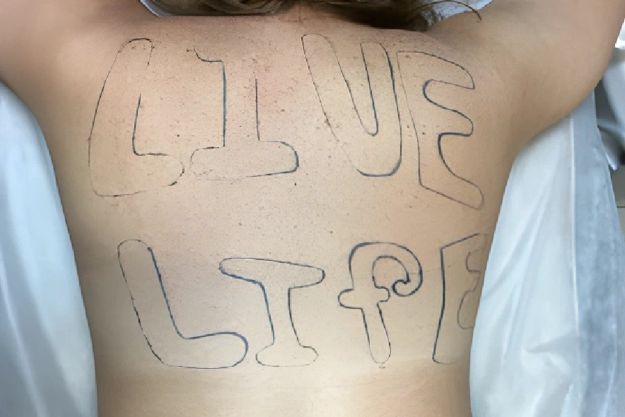 Angel is the proud winner of our second annual Ink-credible Regrets tattoo removal contest. She originally set out to have her entire back covered in edgy street art by a so called “professional.” After just one session, it was clear the reality didn’t match the vision so she walked away, stuck with an unfinished design she never wanted to keep. Now, thanks to Lotus Laser Aesthetics, Angel is finally getting a clean slate.